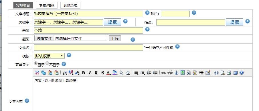 以兰州维动开发的系统文章管理而言,标题一定要新颖,关键字一定要填写,不要怕麻烦,很有用。