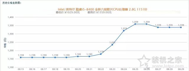 而八代i5 8400更是涨到了1359元,要知道去年的最低价格才不足千元,涨幅已经超过四百元。