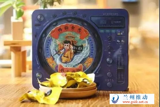 今年5月,天猫国潮行动联手周黑鸭,推出“鸭韵食光,我为诗狂”联名定制礼盒。从外包装来看,丝毫不能看出这是一份速食食品,而是一个潮流与复古结合的打碟机。随礼盒附赠的六张原诗碟片,共含有12首诗词,极具诗情画意。