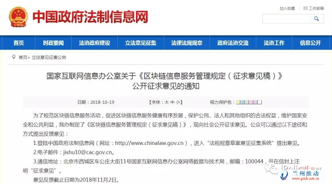 为了规范区块链信息服务活动,促进区块链信息服务健康有序发展,保护公民、法人和其他组织的合法权益,维护国家安全和公共利益,我办制定了《区块链信息服务管理规定(征求意见稿)》,现向社会公开征求意见。公众可以通过以下途径和方式提出反馈意见: