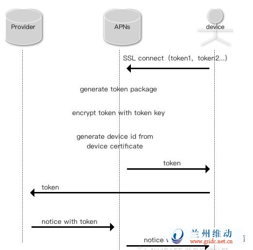 第 4 步:服务器收到后,把带有设备令牌的推送通知,打包发给APNs;
