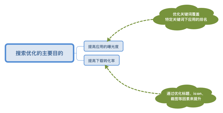 搜索优化的目的无非两个:提高应用的曝光度和提高下载转化率。