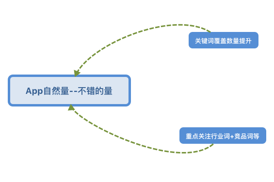 初期的时候,多数App的自然量都较少,可以在关键词覆盖数量上进行优化操作,重点挖掘长尾词,尽最大可能的去蹭量,从而达到提高App排名的目的;如果App在初期也具备不错的流量,可以重点在覆盖优化的基础上,重点关注行业词、竞品词等。