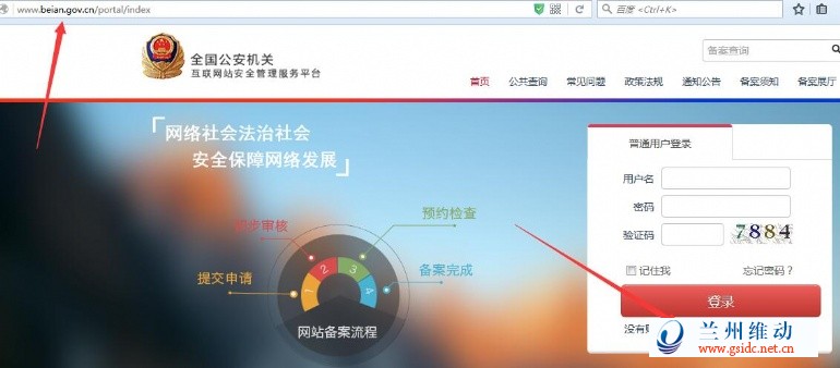 公安联网登记备案参考图例:(全国公安机关互联网站安全服务平台 http://www.beian.gov.cn)