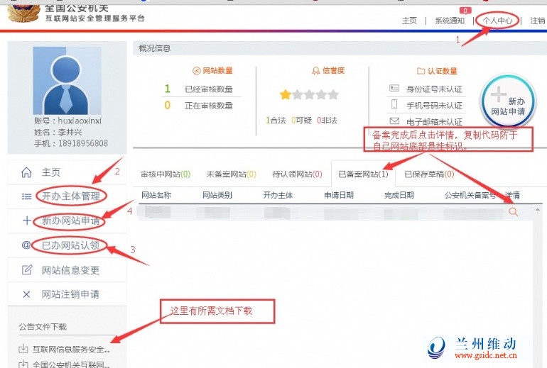 1、打开公安部备案网站www.beian.gov.cn,随后进行相关的用户名注册。注册成功后,点击“个人中心”按钮如实录入基本信息;