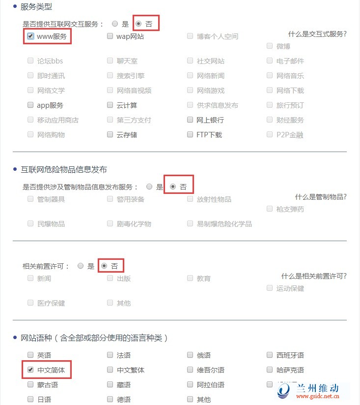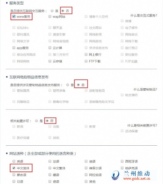 下面是网站接入服务商和域名注册商填写的参考